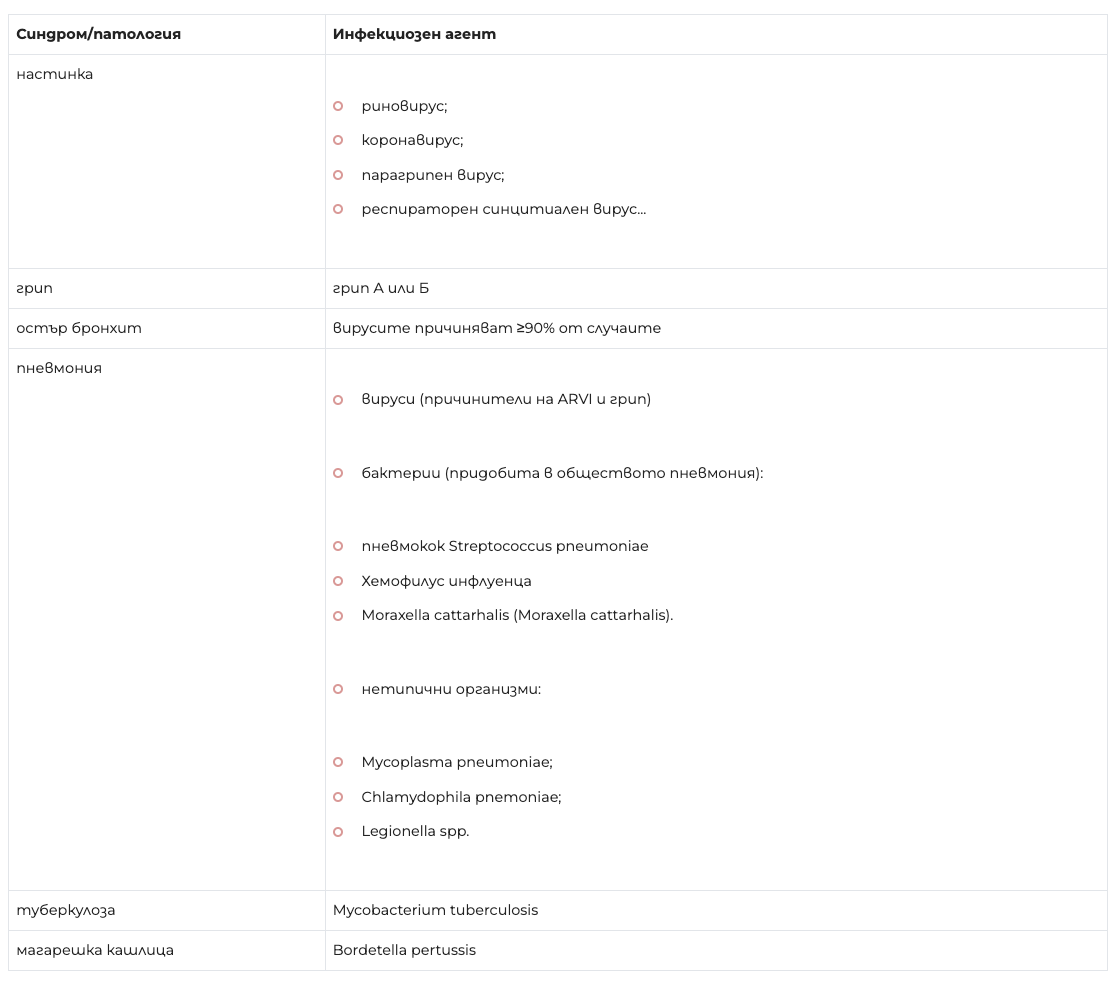 Някои инфекциозни причини за кашлица